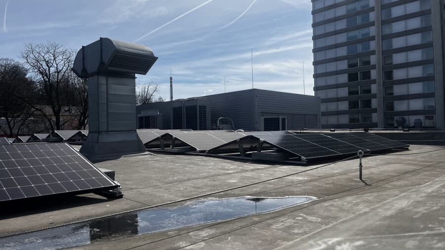 Výstavba řeší vybudování fotovoltaické elektrárny o instalovaném výkonu 93,6 kWp a její připojení do distribuční sítě na střeše budovy „D“ budovy Krajského úřadu v Liberci za účelem zmírnění a zefektivnění energetické náročnosti úřadu.